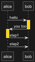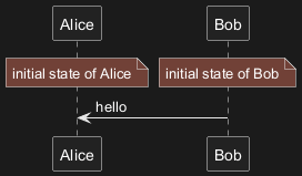 Alice -> "Bob()" : Hello