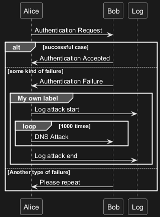 Alice -> Bob: Another authentication Request