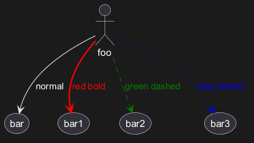 foo --> (bar1) #line:red;line.bold;text:red : red bold