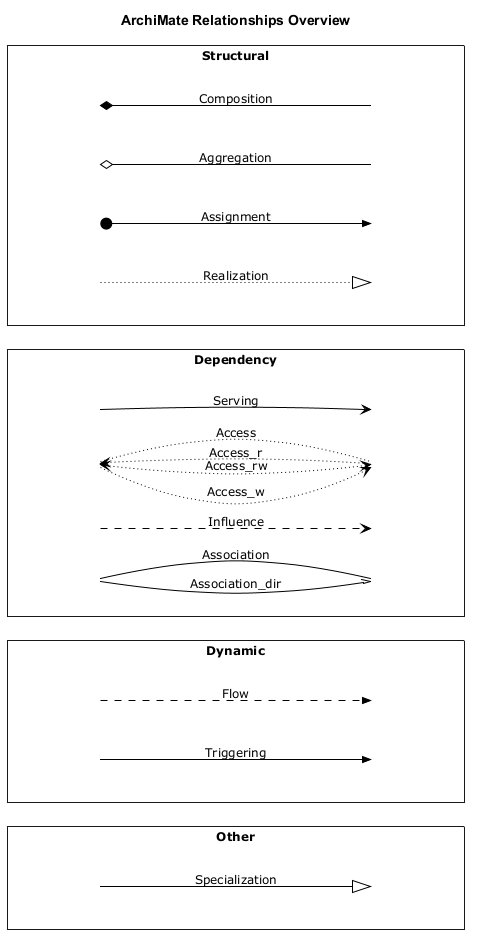HTMLのカラーネームを使って、色の変更ができます。 また、いくつかのキーワード(Business, Application, Motivation, Strategy, Technology, Physical, Implementation)を使うこともできます。