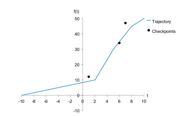scatter "Checkpoints" [(1,12), (6,34), (7,47)] #e74c3c