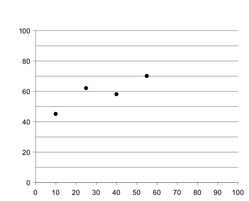 scatter [(10,45), (25,62), (40,58), (55,70)] #3498db