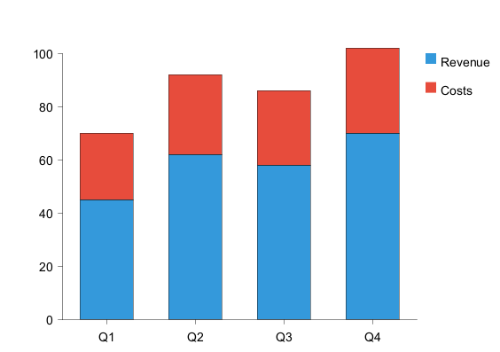 This will display a basic bar chart with quarterly data.