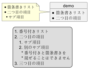 ノードのテキストや注釈の中で、番号付きリストと箇条書きリストを使用できます。