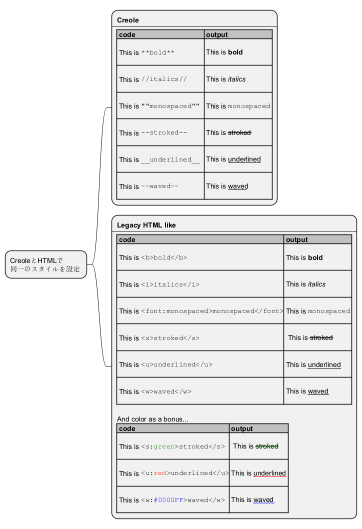 PlantUMLには、軽量のCreoleエンジンが内蔵されており、テキストのスタイルを統一的な方法で定義することができます。