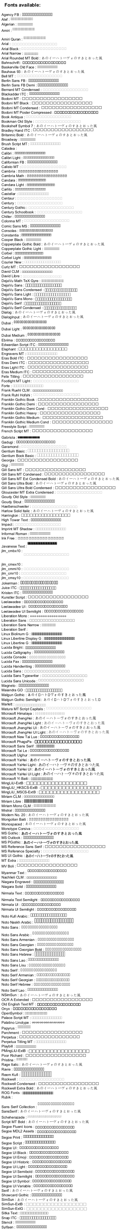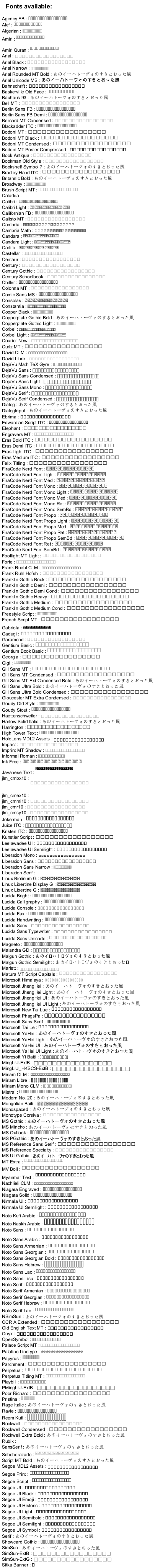 次の特別な構文を使って、システムで利用可能なフォントを知ることができます: