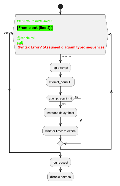 while (\n{{\nsalt\n{+\nPassword | "**** "\n[Cancel] | [ OK ]}\n}}\n) is (Incorrect)