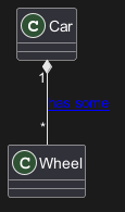 Car "1" *-- "*" Wheel : [[http://plantuml.com/class-diagram has some]]