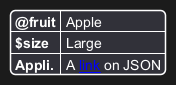 "@fruit": "Apple",