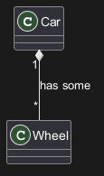 Car "1" *-- "*" Wheel [[http://plantuml.com/class-diagram]] : has some