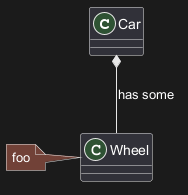 Car *-- Wheel [[http://plantuml.com/class]] : has some