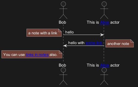Bob -> Alice [[http://plantuml.com/start]] : hello