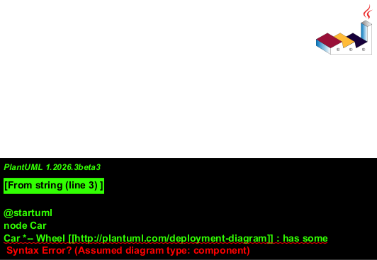 Car *-- Wheel [[http://plantuml.com/deployment-diagram]] : has some