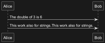 Return a newline in the PlantUML source code. See more documention on the newline page |