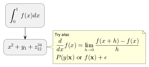 To draw those formulas, PlantUML uses two open source projects: