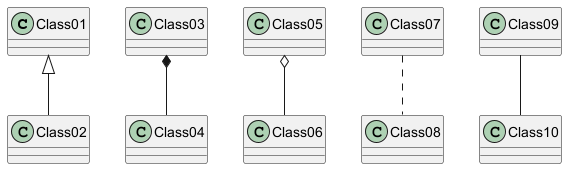 클래스 관계는 다음과 같은 부호를 사용합니다.