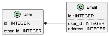 User::id *-- Email::user_id