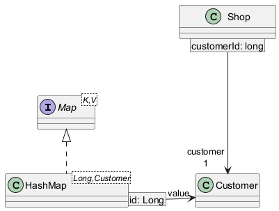 HashMap [id: Long] -r-> "value" Customer