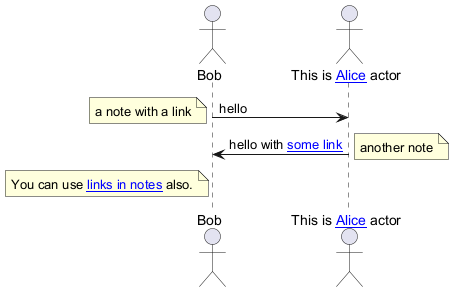 Bob -> Alice [[http://plantuml.com/start]] : hello
