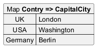 map "Map **Contry => CapitalCity**" as CC {