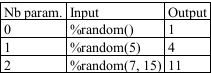 | 1 | %random(n) | returns an interger between 0 and n - 1 |