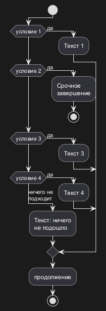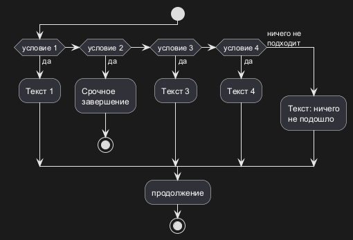 Ряд последовательных проверок условий (горизонтальное отображение)