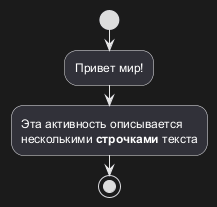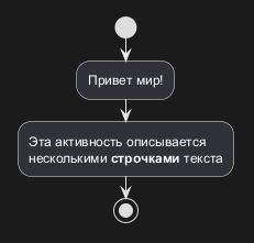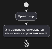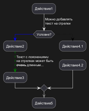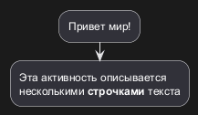 Прежний синтаксис, использовавшийся для диаграмм деятельности, имел ряд ограничений и проблем с поддержкой. Признавая эти недостатки, мы представили полностью переработанный синтаксис и реализацию, которые не только удобны для пользователя, но и более стабильны.