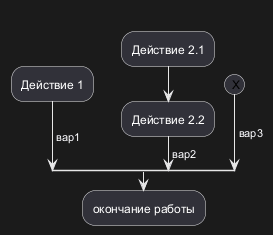 - Отсутствие зависимости от Graphviz: Как и в случае с диаграммами последовательностей, новый синтаксис исключает необходимость установки Graphviz, упрощая тем самым процесс настройки.