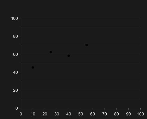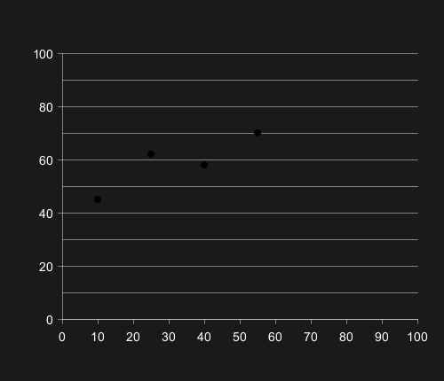 scatter [(10,45), (25,62), (40,58), (55,70)] #3498db