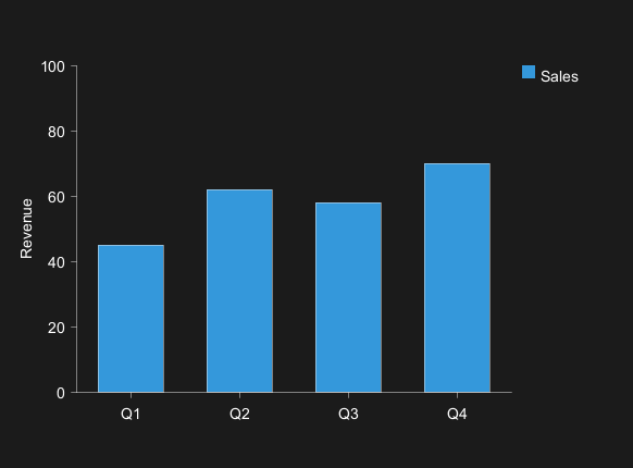 This will display a basic bar chart with quarterly data.