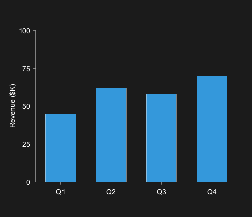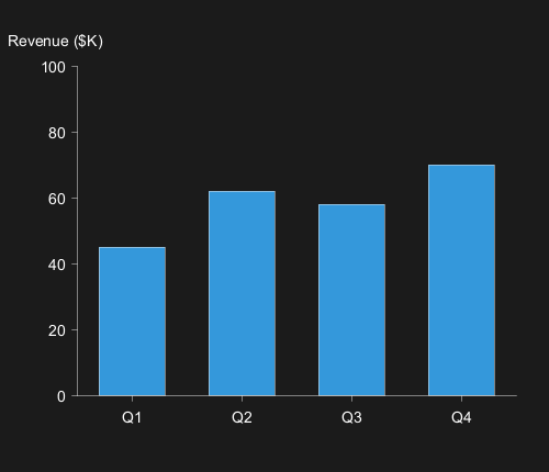 bar "Revenue" [45, 62, 58, 70] #3498db