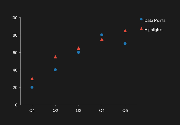 Scatter plots display data as individual points with customizable marker shapes: