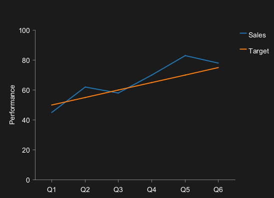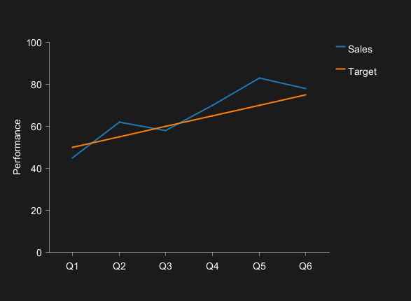 line "Sales" [45, 62, 58, 70, 83, 78] #1f77b4