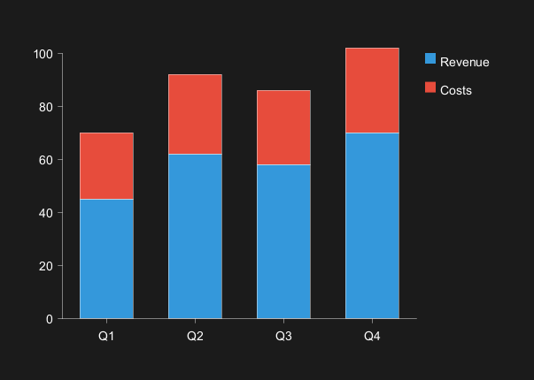 bar "Costs" [25, 30, 28, 32] #e74c3c