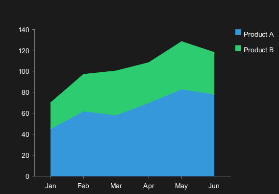 area "Product B" [25, 35, 42, 38, 45, 40] #2ecc71