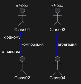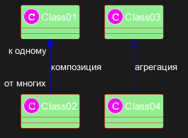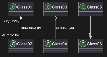 Class01 "к одному" *-- "от многих" Class02 : композиция