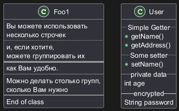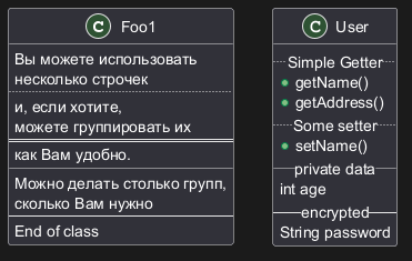 Диаграммы классов строятся с использованием синтаксиса, повторяющего синтаксис, традиционно используемый в языках программирования. Такое сходство создает привычную среду для разработчиков, что способствует более легкому и интуитивно понятному процессу создания диаграмм.