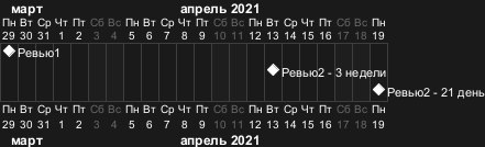 вехи- значимые события или цели на временной шкале проекта, обозначенные отдельным символом.