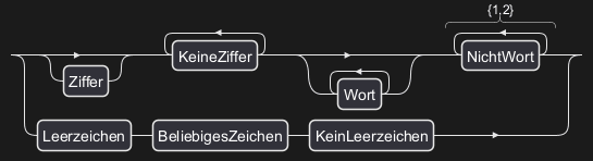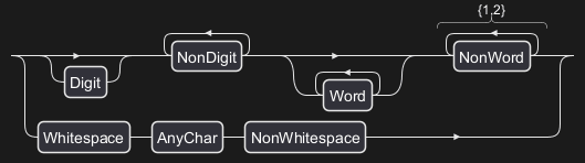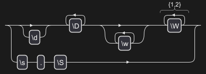 - Улучшении распознавания шаблонов: Диаграммы помогают пользователям выявлять цикличность в регулярных выражениях, которую трудно увидеть в текстовой нотации.
