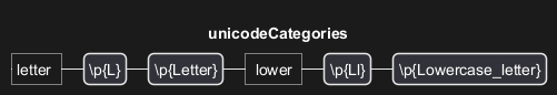 Категории символов Юникода в регулярных выражениях позволяют сопоставлять определенные типы символов, такие как буквы или цифры, в различных языках и сценариях. PlantUML может визуализировать эти категории, облегчая понимание их охвата.