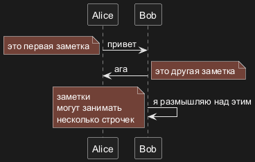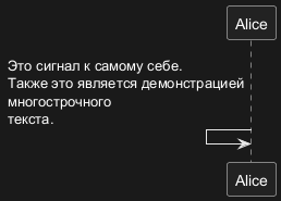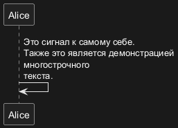 Alice -> Alice: Это сигнал к самому себе.\nТакже это является демонстрацией\nмногострочного \nтекста.