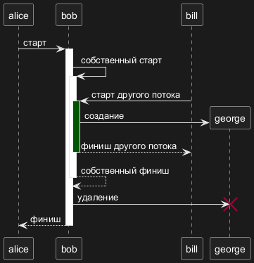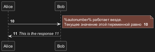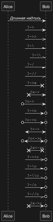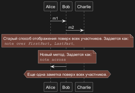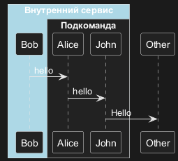 В диаграммах последовательности на языке PlantUML команда