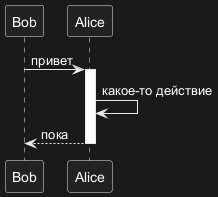 Alice->Bob : Привет