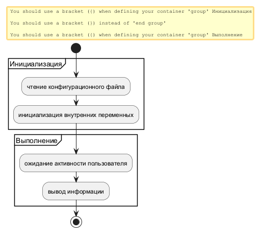 Использование либого из них не обязательно, диаграммы активности можно строить и без указания начального и/или конечного состояний