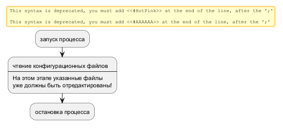 Прежний синтаксис, использовавшийся для диаграмм деятельности, имел ряд ограничений и проблем с поддержкой. Признавая эти недостатки, мы представили полностью переработанный синтаксис и реализацию, которые не только удобны для пользователя, но и более стабильны.
