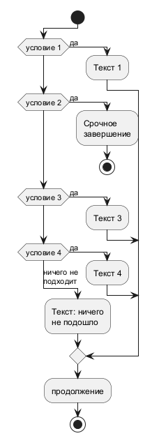 Ряд последовательных проверок условий (вертикальное отображение)