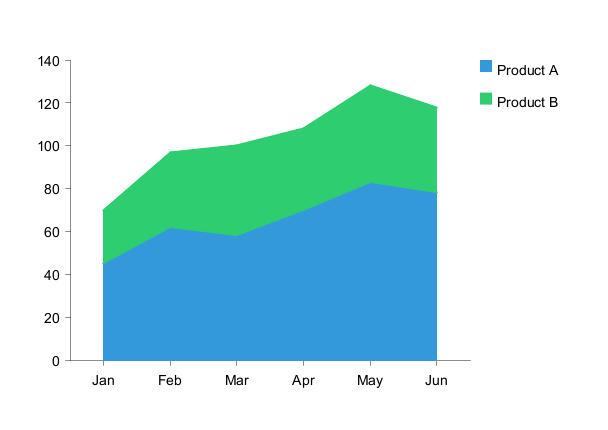 area "Product B" [25, 35, 42, 38, 45, 40] #2ecc71