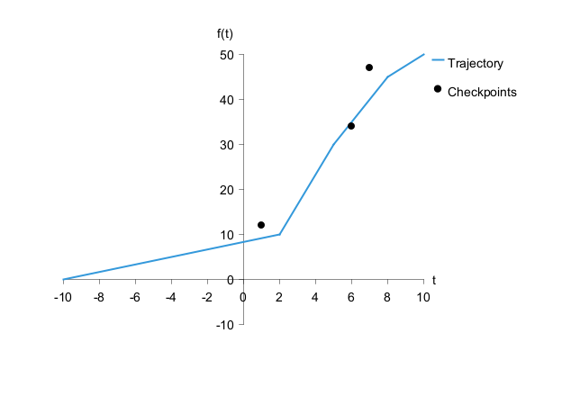 scatter "Checkpoints" [(1,12), (6,34), (7,47)] #e74c3c