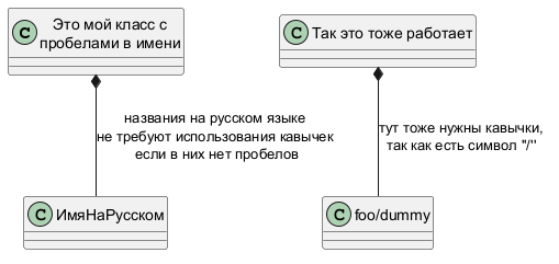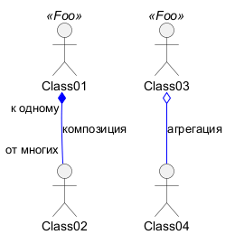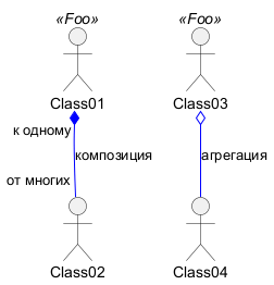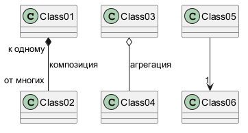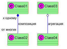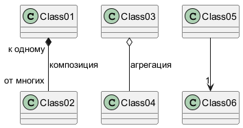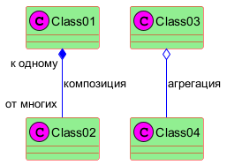 Class01 "к одному" *-- "от многих" Class02 : композиция
