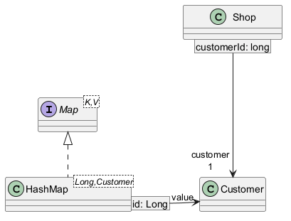 HashMap [id: Long] -r-> "value" Customer